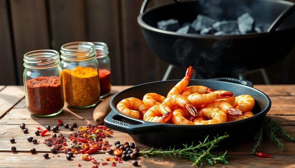You'll find Cajun seasoning's magic lies in its perfect blend of paprika, garlic powder, and various peppers, creating a signature Louisiana heat that's essential for outdoor cooking.